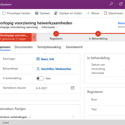 Middels het dashboard heeft elke medewerker zicht op de openstaande taken, nieuwe berichten, gewijzigde statussen of naderende of gepasseerde deadlines m.b.t. de eigen of team zaken. Zo weet men altijd wat er te doen staat, waar actie op ondernemen moet worden.