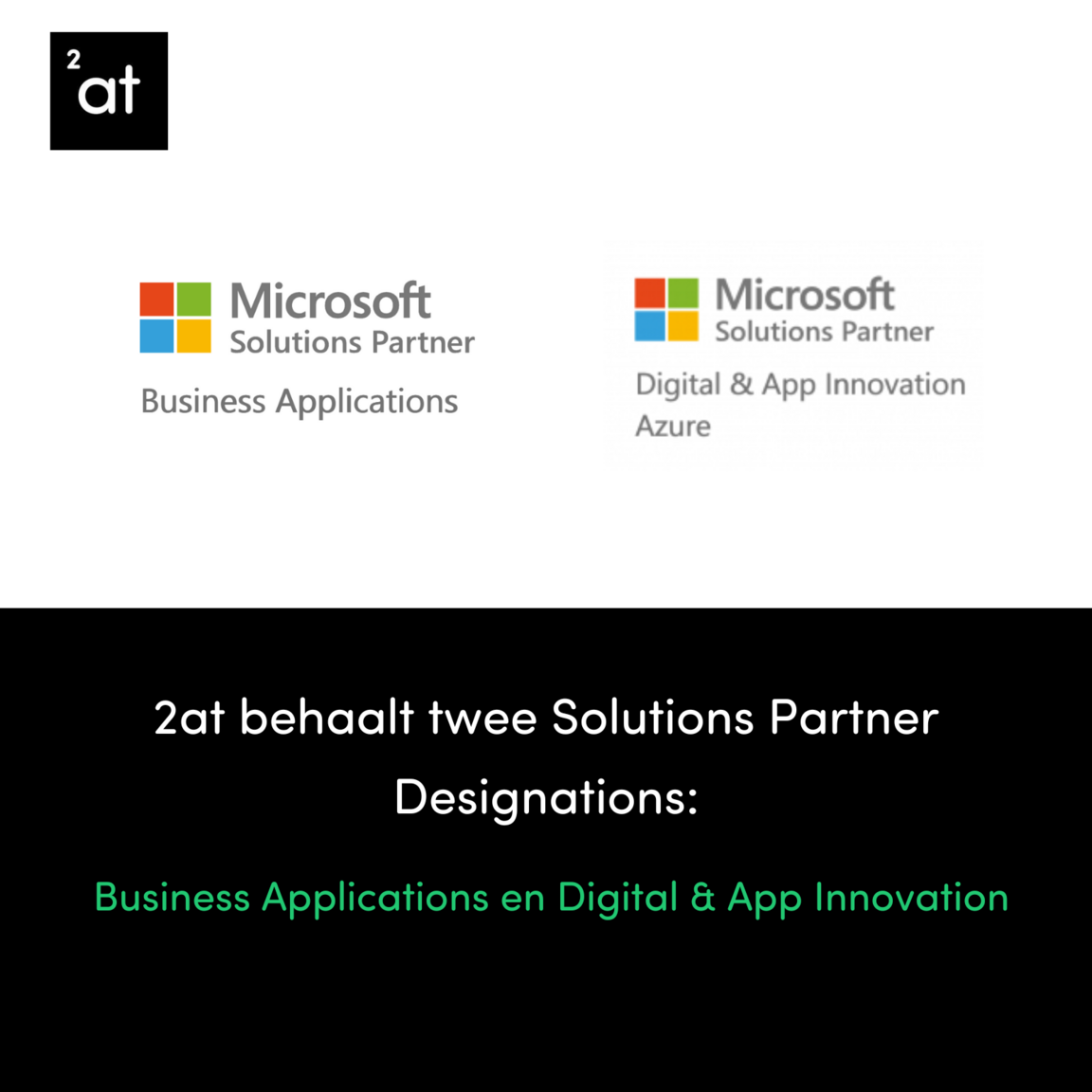 Wij, 2at, zijn verheugd om aan te kondigen dat we twee Microsoft Solutions Partner Designations hebben behaald. Deze prestigieuze erkenningen bevestigen onze bewezen expertise op het gebied van Digital & App Innovation en Business Applications. De Solutions Partner Designations zijn gebaseerd op de strategische oplossingsgebieden van Microsoft. Door het behalen van deze erkenningen tonen we ons vermogen om het succes van onze klanten te bevorderen en te voldoen aan hun behoeften op het gebied van Business Applications en Digital & App Innovation. Deze erkenningen hebben aanzienlijke waarde voor zowel 2at als onze klanten. Ze dienen als een duidelijke identificatie van ons als een ervaren en bekwaam partner op het gebied van de Microsoft Cloud-oplossingsgebieden. Bovendien geven de erkenningen aan dat we succesvolle resultaten hebben behaald voor onze klanten, gemeten aan de hand van klantsucces, vaardigheden en prestaties.