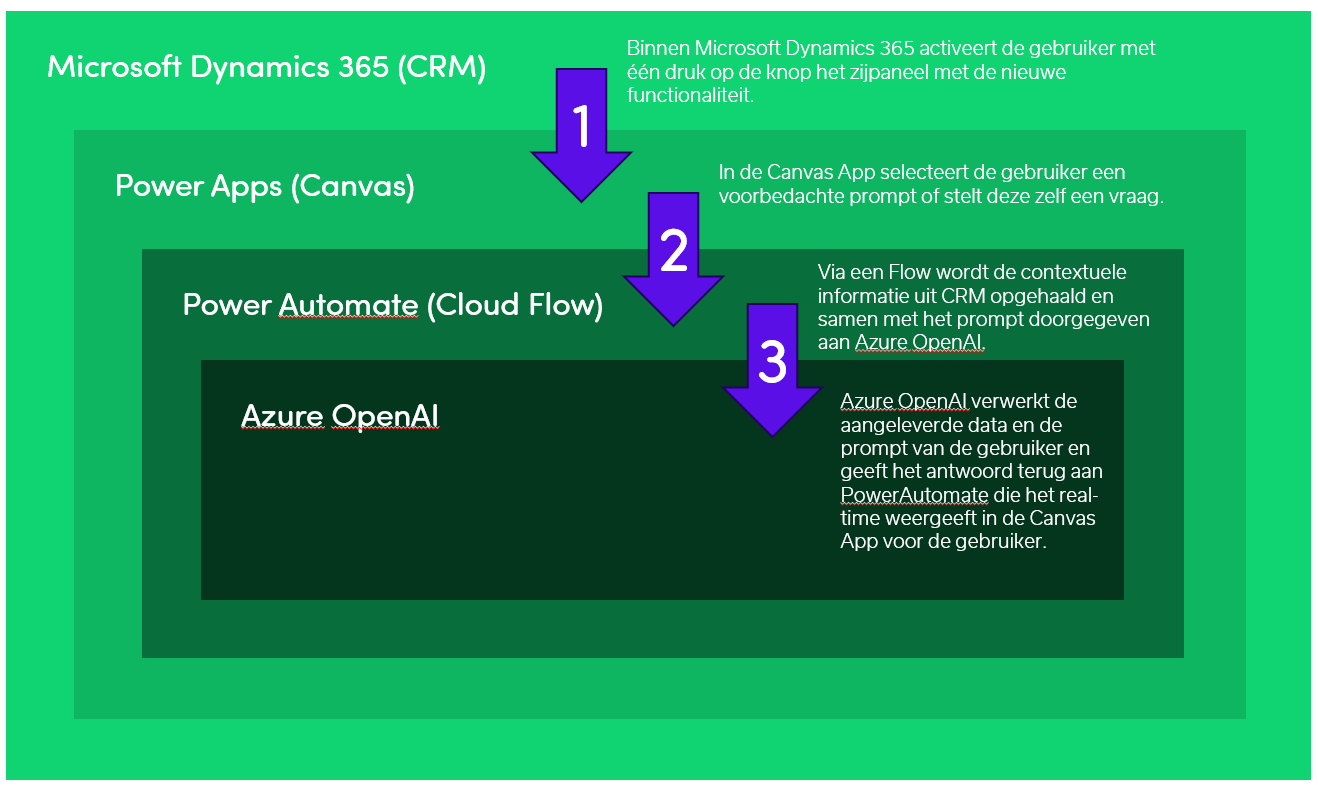 De bouwblokken: Azure OpenAI, Power Automate, PowerApps, en Microsoft Dynamics 365 (CRM)